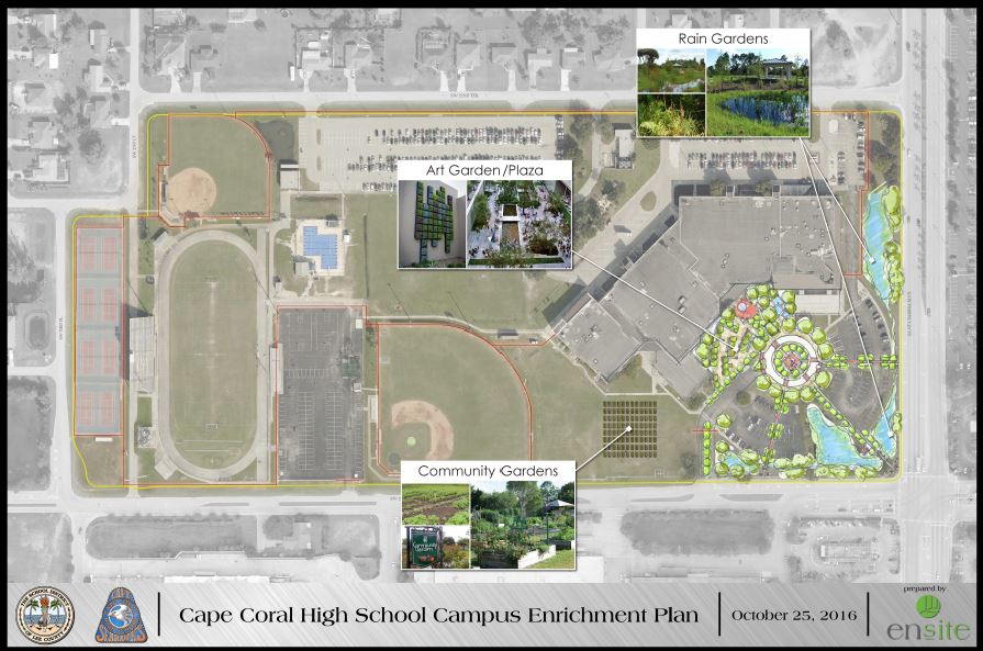 Since 2009, we have helped integrate greater connectivity, engagement, safety and wellness at multiple schools across Lee County, including Mariner High, Mariner Middle, Gulf Elementary, Tanglewood, Heights Elementary and more. We’re currently excited to be helping Cape High conceptualize a campus enrichment plan to benefit students, staff and the community at large far into the future. Highlights include: